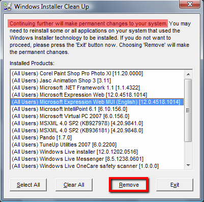 Please use the Windows Installer CleanUp Utility or a third-party uninstaller software (like Revo Uninstaller) at your discretion.